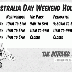 On Monday 27th January our East Vic Park and Fremantle stores will be closed, and Northbridge will be OPEN 11am - 5pm.